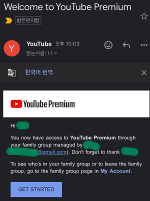 XX에 의해 만들어진 가족 그룹을 통해 너는 지금부터 유튜브 프리미엄으로 접속할 수 있어.