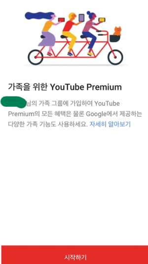 XX에 의해 만들어진 가족 그룹을 통해 너는 지금부터 유튜브 프리미엄으로 접속할 수 있어.
