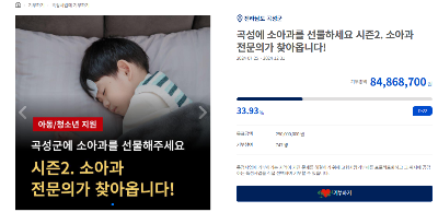 예를들어 아까 소개들인 전남 곡성 소아과 사업에 기부를 하시면 전남 곡성 담례품을 신청할 수 있습니다.