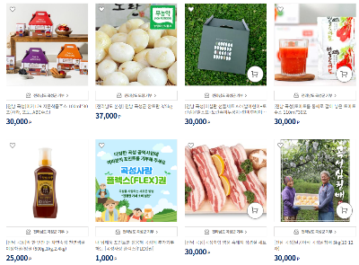 이외에도 마스크팩, 농산물꾸러미, 커피, 쌀국수, 떡 등등 종류가 무궁무진합니다.