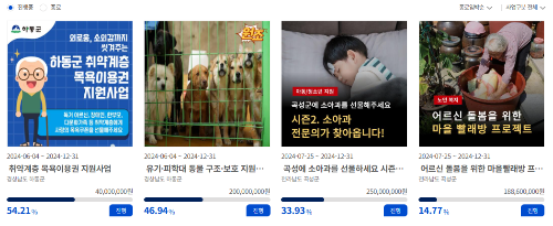 의미있는 사업들이 정말 많습니다. 취약계층 목욕 이용권 지원사업이나 전남 곡성에 소아과 지원 사업, 유기 동물 보호 사업 등등이 있습니다.