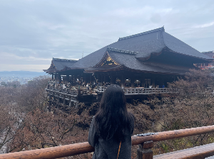 청수사는 8세기에 건축된 불교 사원입니다. 청수라는 이름은 사찰 내 폭포에서 유래되었고 이곳의 물을 마시면 학업, 연애, 건강 중 하나의 소원이 이루어진다고 합니다. 그래서 곳곳에 물과 관련된 조형물들이 많이 있어요.
