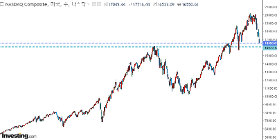 16500 포인트가 지지라인인데 결국 여기까지 도달하고 말았습니다.
