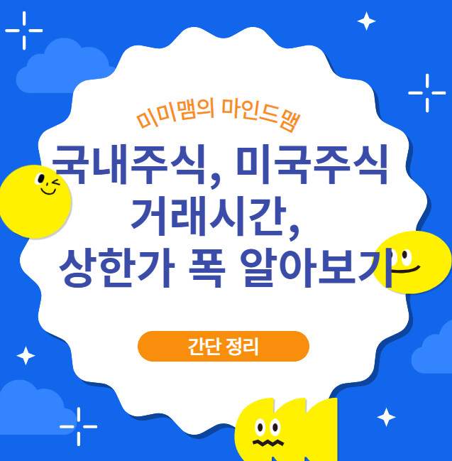 오늘은 다소 복잡한 국내, 미국 주식 거래시간과 가격제한폭에 대해 알아보았습니다.