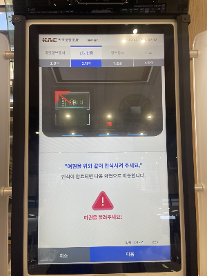 공차에서 더 중심부로 이동하다보면 나무색 기둥 옆에 바이오 여권 등록 기기가 보입니다.