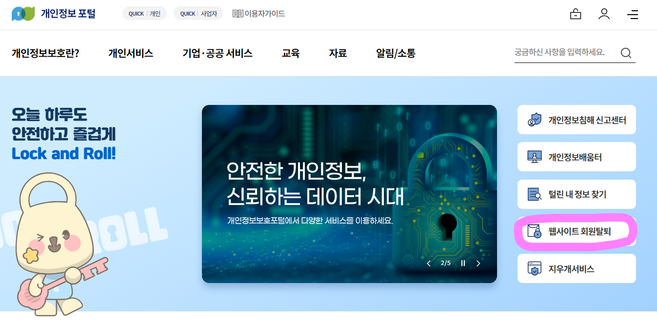2. 메인화면에서 웹사이트 회원탈퇴 클릭 - 웹사이트 회원탈퇴 한번더 클릭