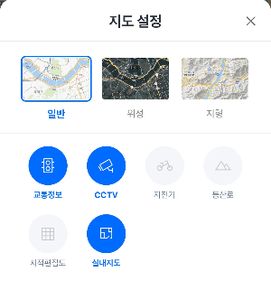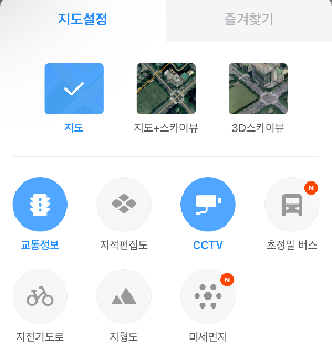 그럼 지도 설정 화면이 뜨고, 여기서 교통정보, CCTV를 활성화시켜줍니다.