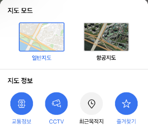 지도 모드는 일반 지도로 놓고 지도 정보에서 교통정보와 CCTV를 파랗게 활성화시킵니다.