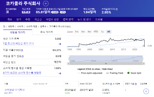 미국주식의 꽃은 배당금입니다. 미국주식의 경우 주가가 하락하면 배당금이라도 챙겨주려고 노력하는 기업들이 많습니다. 그만큼 주주친화적인 기업이 많은 것이지요. 만약 배당투자를 노리신다면 배당을 얼마 주는지, 배당 성장은 얼마나 하는지 확인할 필요가 있습니다.