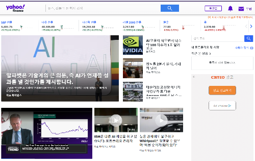 야후 파이낸스는 실시간 지수 확인과 각 기업별 뉴스들을 빨리 확인할 수 있습니다.