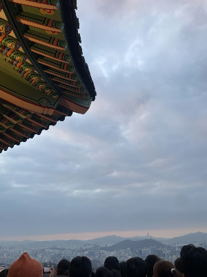 저희는 라면먹다가 좀 늦어서 상기 사진처럼 뒷쪽에 있었는데 그냥 맘먹고 일출 한 30분 전부터 딱 팔각정 2층 동쪽 방향에서 대기타는 분들도 많으셨어요. 롯데타워랑 남산타워도 보이더라구요.