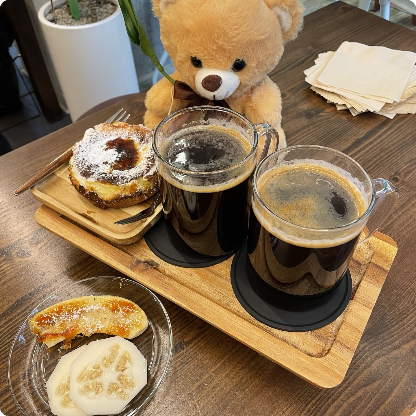 저희는 아메리카노 두잔, 바스크치즈케익을 주문하였습니다.