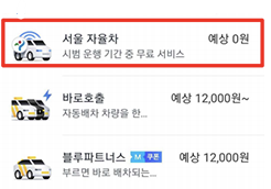 평일 밤 11시~새벽 5시에 해당 지역에서 호출할 경우 <서울 자율차>가 활성화됩니다. 금액은 무료입니다.