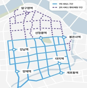 운행 차량은 3대로 시작해 향후 지속적으로 확대 예정이고 내년 상반기에는 논현, 신사 등 강남 시범운행지역 전역으로 확대될 예정입니다.