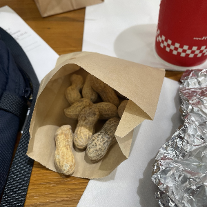 주문하는 곳에 보시면 땅콩이 포대자루에 대용량으로 쌓여있습니다. 땅콩은 파이브가이즈에서 무료로 제공하고 있어서 옆에 작은 봉투에 먹을 만큼 담아서 가져가시면 됩니다. 짭조름하고 고소한 맛입니다.