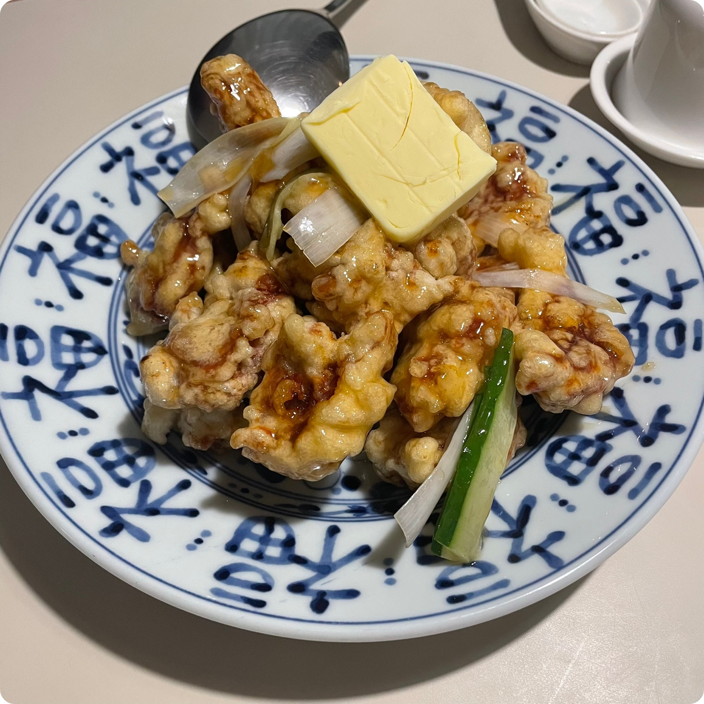 보보식당의 대표 메뉴라고 한다. 탕수육에 난데없이 버터 한덩어리가 올라가있음;;; 처음에 이게뭔가했는데, 먹는 방법은 옆에 주걱으로 뒤적뒤적 섞으면 버터가 점점 녹으면서 탕수육으로 스며든다.