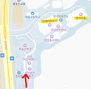 지도를 같이 보시면 성남아트센터로 진입시 빨간 화살표 방향으로 진입합니다.