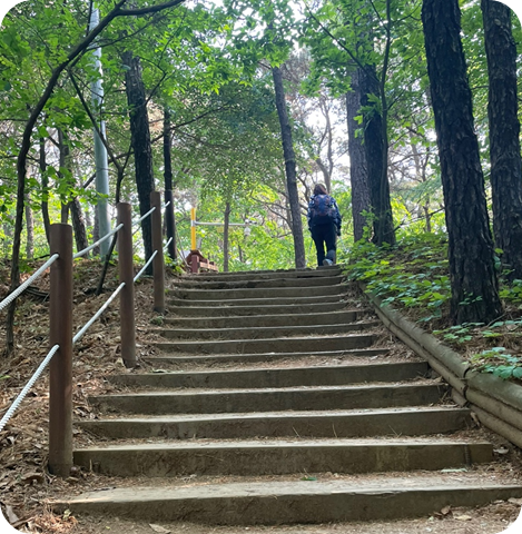 길이 여러갈래가 아니기 때문에 직관적으로 가시면 됩니다. 초반 30분 정도는 하나도 안어려워요. 산책하듯이 올라가시면 되고, 30분 이후부터는 슬슬 계단이 나옵니다. 여기서부턴 쉬엄 쉬엄 올라가시면 됩니다.