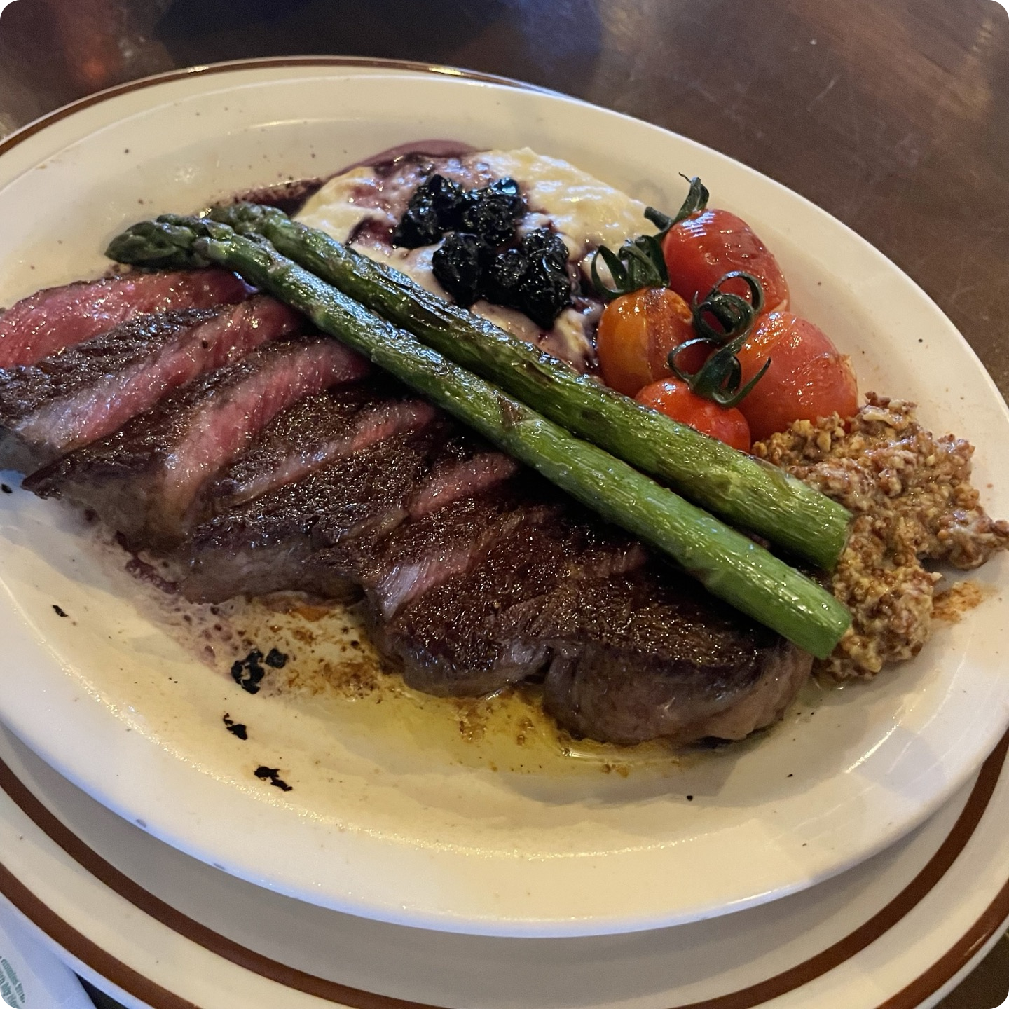 트러플 크림의 여파로, 스테이크는 전형적인 스테이크 였습니다. 옆에 가니쉬로 매쉬드 포테이토가 있었는데 달지 않고 담백해서 좋았고 무난하니 맛있었어요. (사실 기억 잘 안남)