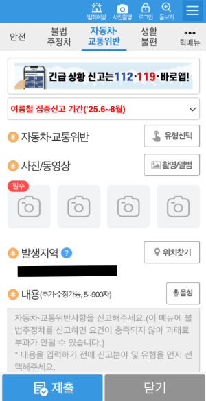 4. 차량번호, 발생일자, 휴대전화번호 입력 및 파일 업로드