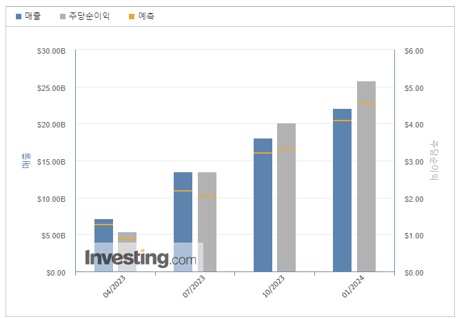 24년 1분기는 매출 $221억, 영업이익 $136억, 순이익 $122억이며
