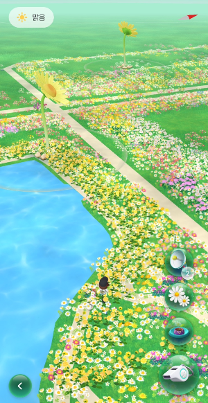 걷는 길에 큰 조형물이 있거나 핵심 스팟이 있는 곳에는 저렇게 큰 꽃이 피어있습니다. 큰 꽃을 누르면, 같은 종류의 꽃 씨앗을 줍니다.