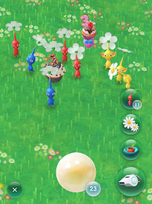이 피크민들에게 먹이를 먹이면 머리에 꽃을 피우는데, 이 꽃을 수확해서 다니는 길에 꽃을 뿌립니다^^ㅋㅋ