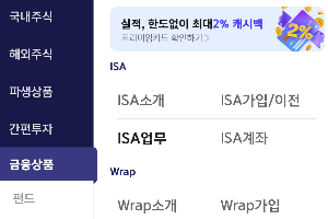 상기 사진처럼 영웅문 앱 메뉴 - 금융상품 - ISA - ISA 업무로 접속해주세요.