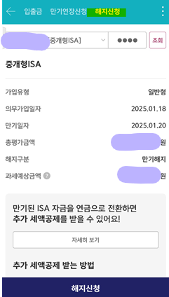 저는 비과세 및 분리과세 혜택을 받고 ISA 계좌를 신규 개설하기 위해 만기일 전까지 모든 금융 상품을 매도하였습니다.