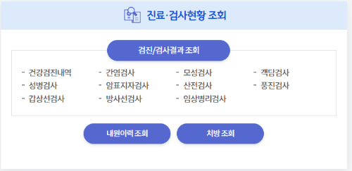 메인페이지에서 진료,검사현황 조회>검진/검사결과 조회 눌러주세요.