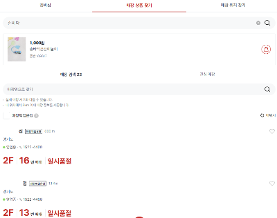 <매장 상품 찾기>로 들어가셔서 원하는 물건을 검색합니다.
