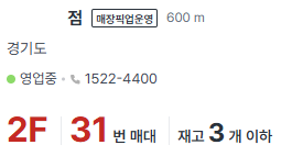 참고로, 예시처럼 재고 3개 이하로 뜨는 경우 실제 매장에 없는 경우가 허다했습니다..