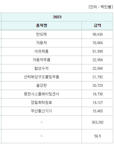 3. 2021.2022에 이어 2023도 반도체가 수출 1위를 차지하였습니다.