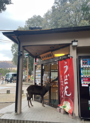 사진보시면 우동집에 입장하려는 사슴을 볼 수 있습니다.