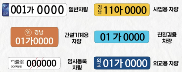 연두색 번호판이 가장 최근 도입된 번호판입니다.