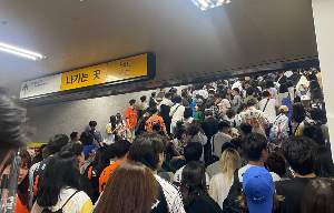 그래서 종합운동장 5번 출구 내부에 사람들이 바글바글했습니다.