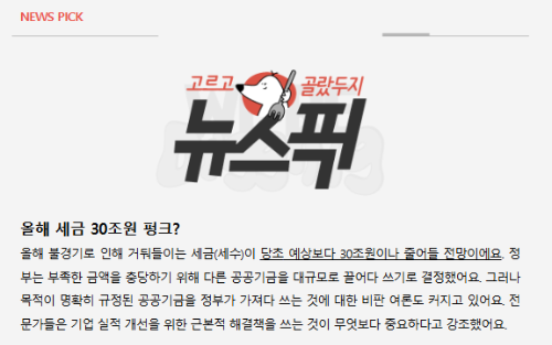 증권, 부동산, 기업, 금융 등 국내외 이슈들을 정리해서 한번에 메일로 보내주는데 가볍게 읽기 좋습니다.