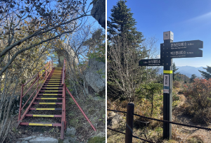 돼지령에서 갑자기 길이 좀 좁아지고 희미해져요. 그래서 길 잃기가 쉽더라고요. 사진 보시면 아시겠지만 저렇게 표지판이 있고 양방향으로 길이 없어서 깜짝 놀랐거든요. 이상한 길로 들어가다가 뒤에 오시는 등산객분이 거기 아니라고 말해주셔서 다행히 등산로로 잘 갈 수 있었습니다. 표지판에서 좀 떨어진 곳에 좁은 등산길이 하나 있습니다. 주위를 잘 둘러보셔요.
