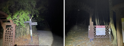 여기서 당일치기로 화대종주하실 분들은 버스 내리자마자 바로 사라져 버립니다. 나중에 보니까 거의 뛰듯이 등산해야 하루 안에 가능하더라고요. 사진에 보이는 대문이 화엄사 불이문인데, 여기가 블랙야크 화대종주 첫 번째 인증지입니다. 얼굴 보이게 사진 찍어주시고 GPS 잡아주세요. 헤드라이트도 당연히 쓰셔야 합니다.