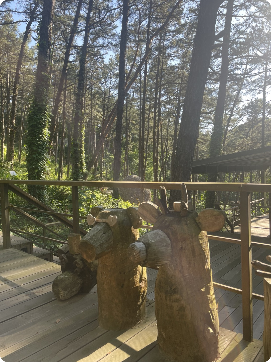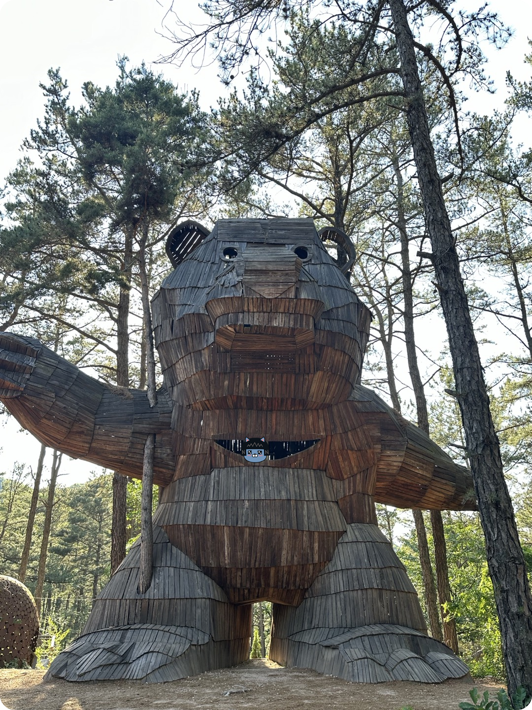 초대형 곰돌이 조형물입니다. 절대 못찾을수가 없는 곰돌이의 존재감. 옆구리로 침투하는 길도 있어서 들어가면 저렇게 얼굴을 들이밀고 같이 사진 찍을수도 있어요! 내부가 생각보다 가팔라서 애기들은 꼭 보호자분이 같이 들어가야 할 것 같습니다.
