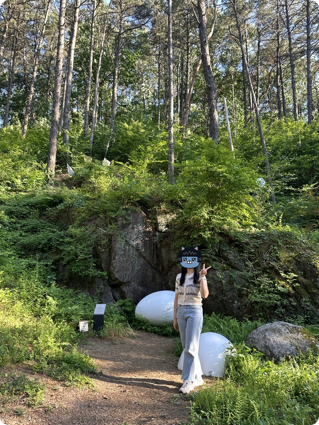 사실 이 조형물 보고싶이서 연미산 자연미술공원을 왔는데, 생각보다 빛에 많이 영향을 받는 조형물이었어요. 다양한 포즈로 예쁘게 사진 찍어보세요~~