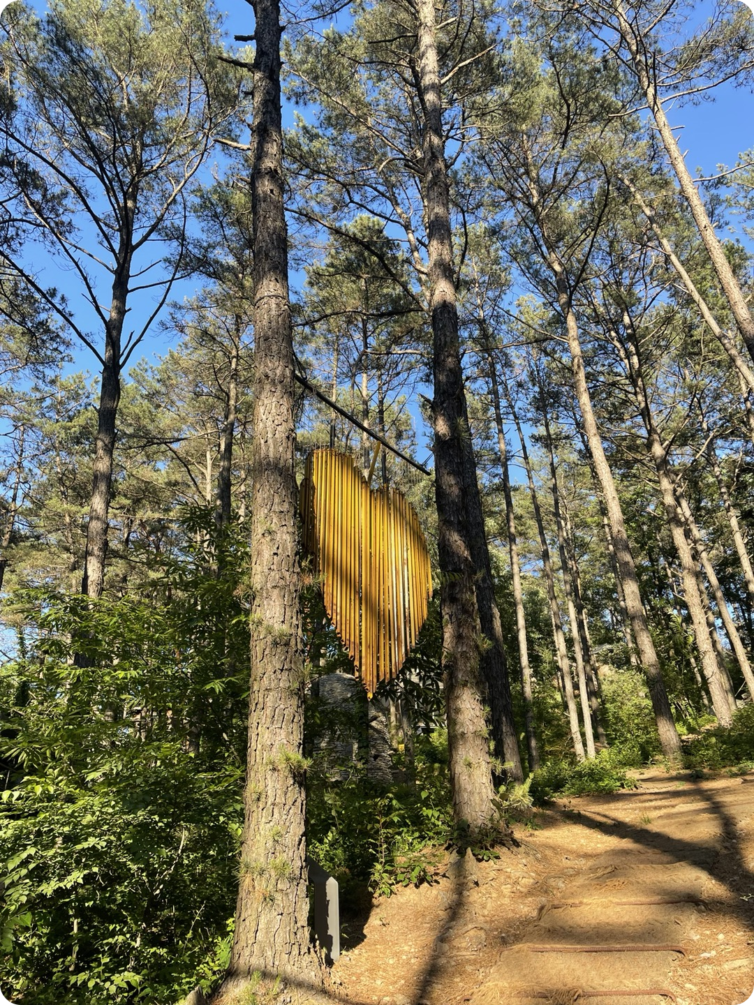 바람이 솔솔 불면, 저 하트를 이루는 노란 파이프들이 서로 부딪히며 소리를 내요. 신비롭고 예쁘고, 그냥 혼자 다합니다.