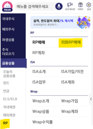 2. 메뉴>금융상품>RP>외화RP매매 접속