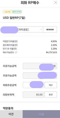 외화 RP 매수시 확인해야 할 사항은 상기 사진에서 형광으로 표시한 매수가능한도입니다.