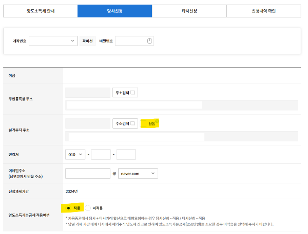그리고 양도소득기본공제 적용여부에 <적용>에 체크해주세요.