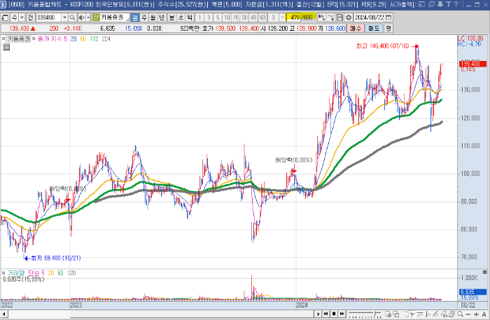 이후 원하는 종목을 검색합니다. 저는 키움증권 차트로 해볼게요.