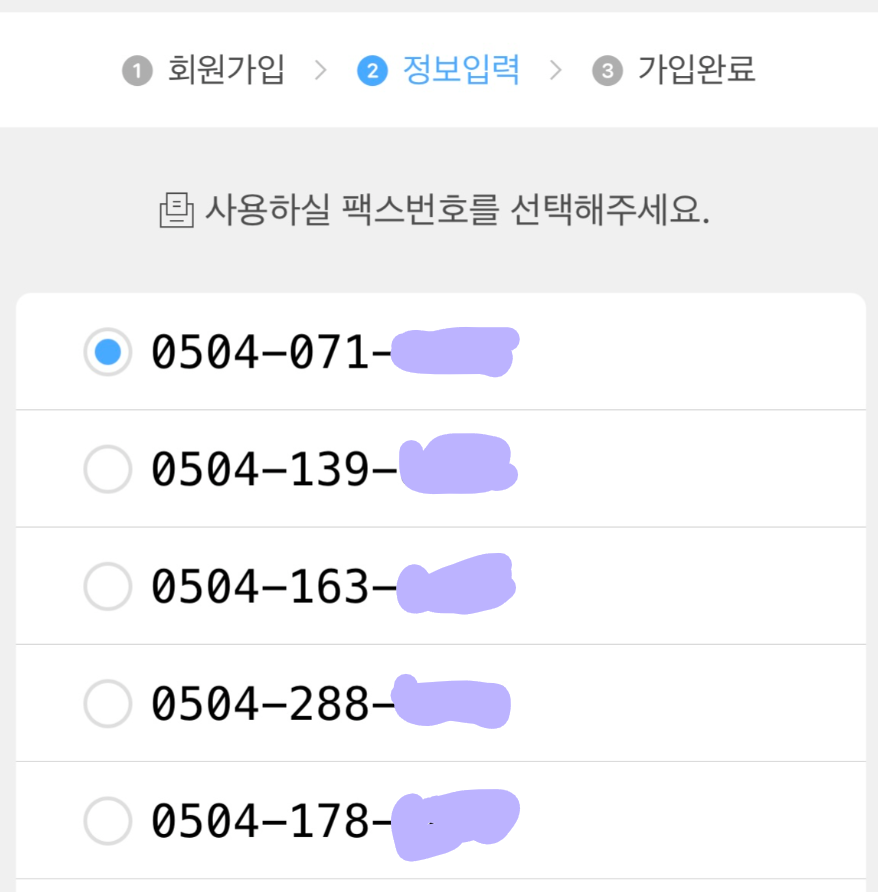 3. 신규 가입이라면 모바일 팩스 번호를 선택합니다.