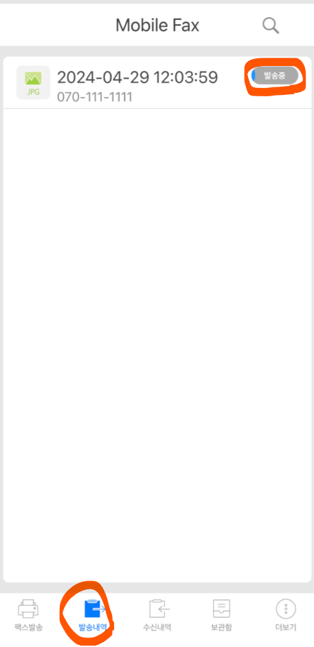 모바일 팩스 수신도 가능합니다. 하단의 수신내역을 터치하면 수신된 팩스 파일을 볼 수 있습니다.