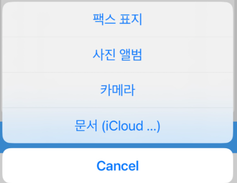 사진 앨범에 서류 사진이 있다면 사진 앨범 터치, 바로 사진 촬영해서 보내고 싶다면 카메라를 터치하시면 됩니다.