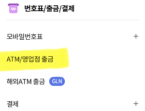 메뉴>번호표/출금/결제>ATM,영업점 출금으로 접속합니다.